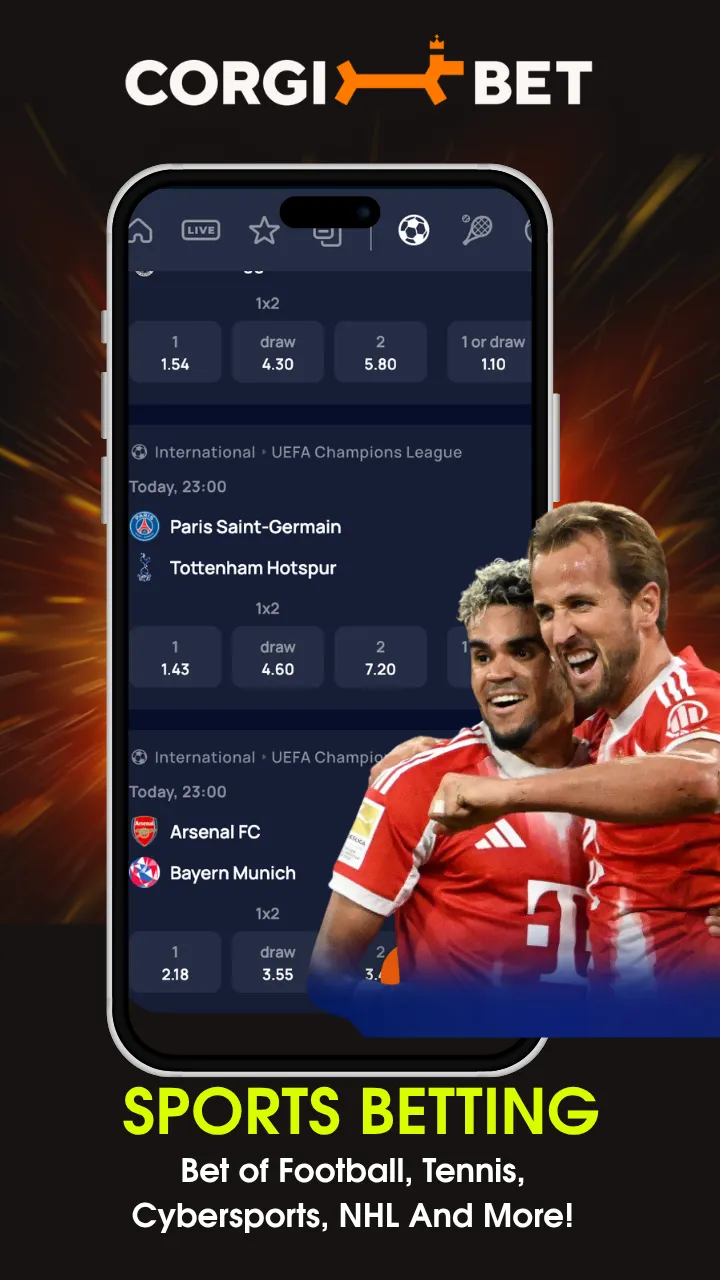 User-friendly interface: Designed for fast and intuitive navigation, with high-quality graphics for an enhanced gaming experience. Add the CorgiBet shortcut to your home screen to get started even faster.